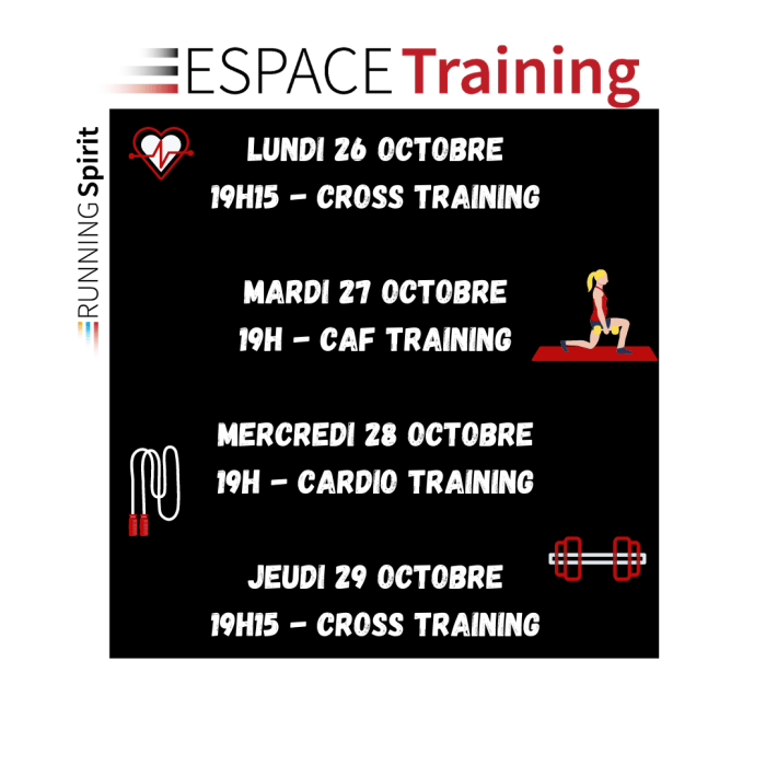 Comme convenu voilà le programme des Teams Trainings de la semaine prochaine ! Ces cours auront lieu en extérieur, nous dépendrons donc de la météo.
